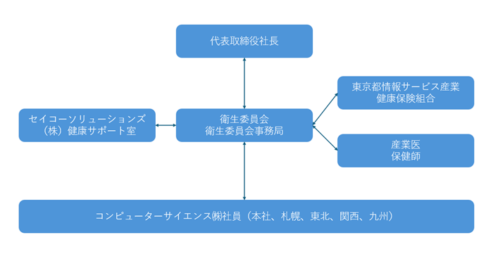 当社は、「会社にまつわる人々の幸せと豊かな生活を実現する」という経営理念を掲げています。 この理念を達成するためには社員一人一人が健康でなければ実現することはできません。 社員が健康であってこそ、最適最良な技術をお客様に提供することができ、 ひいては当社の発展にもつながると私たちは考えます。